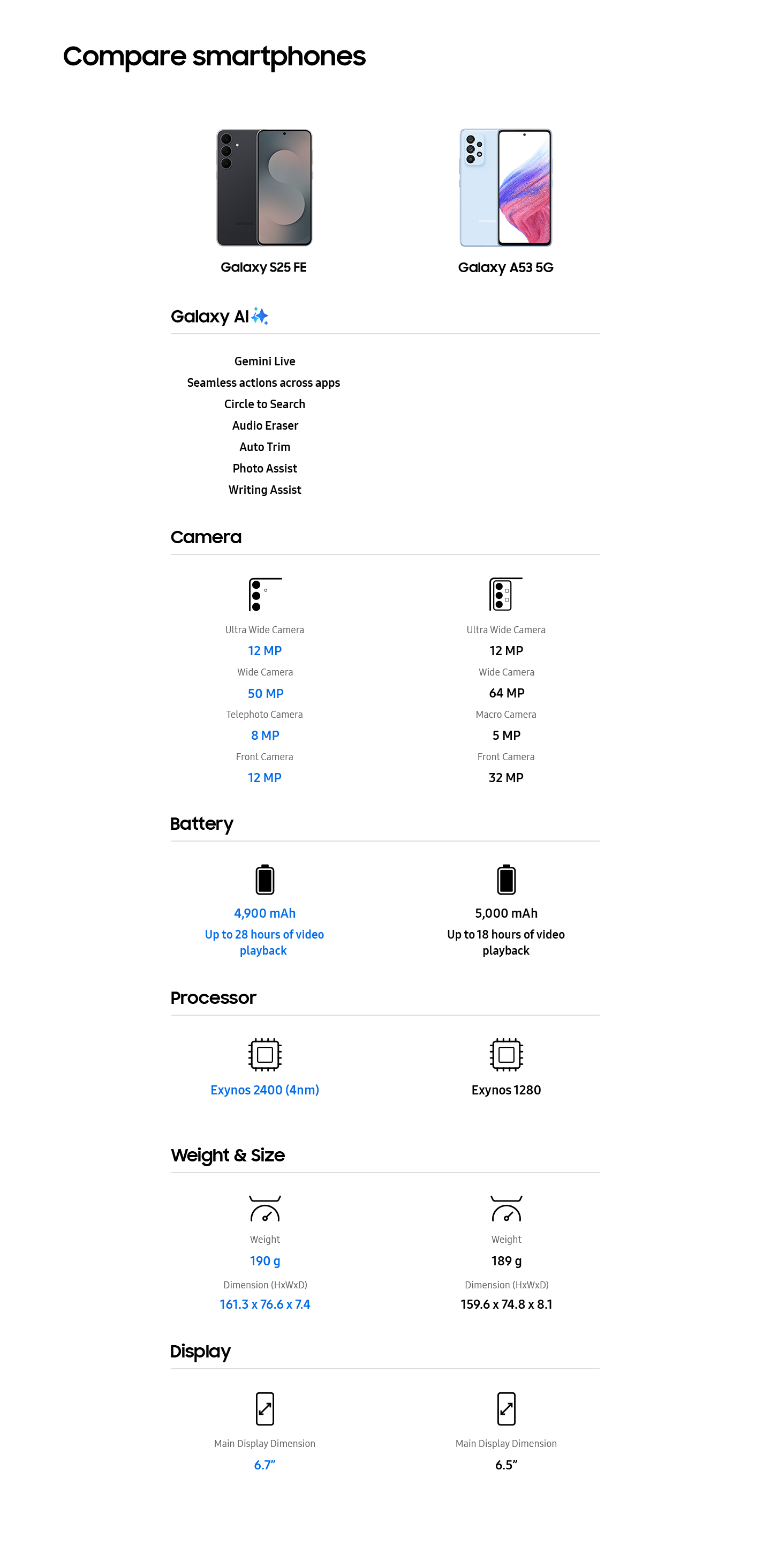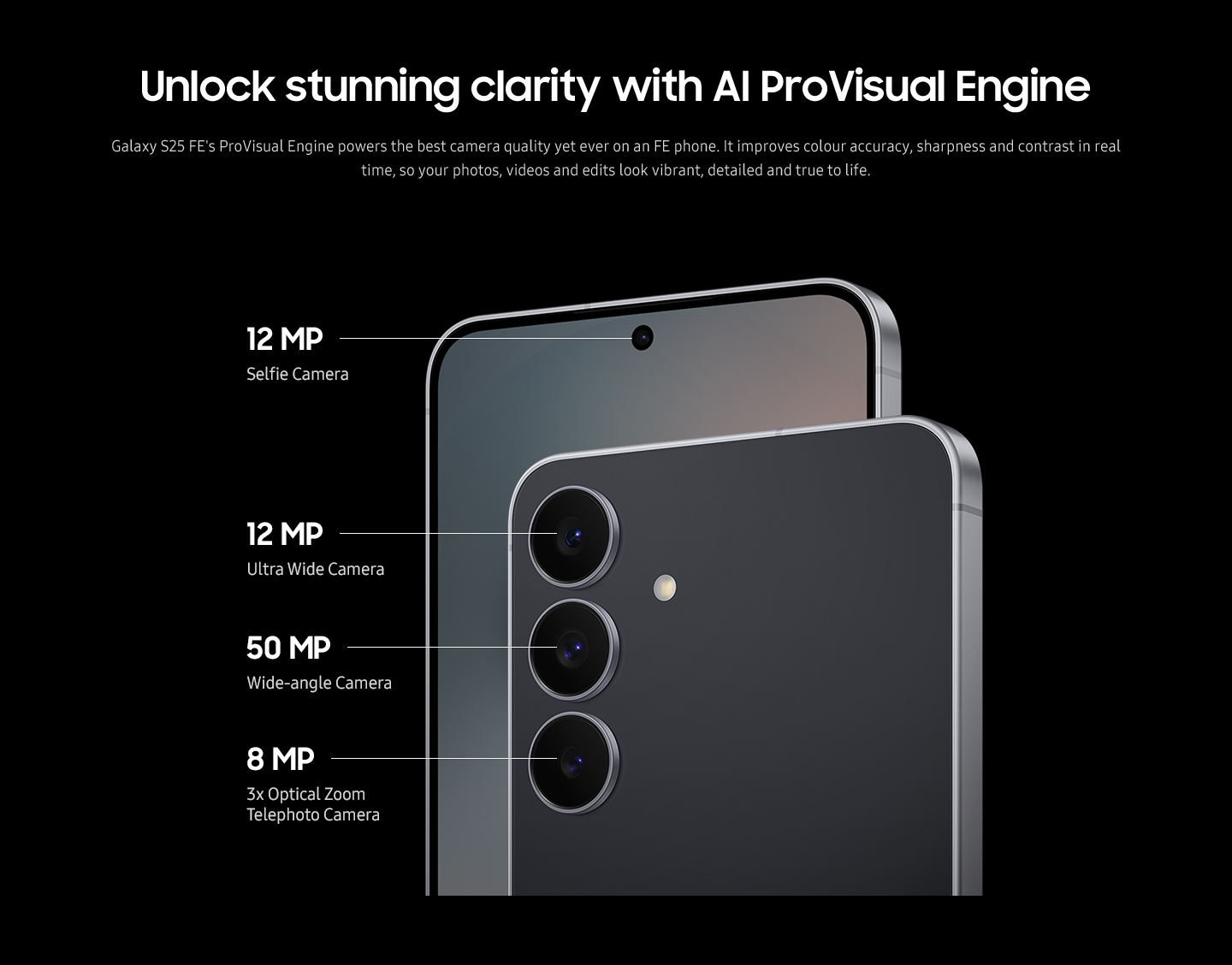 | Front Camera : 10MP, 1.22um, F2.4 4K 60FPS Rear Camera : Wide : 50MP with OIS, 1.0um, F1.8 Ultra Wide : 12MP, 1.12um, F2.2 Tele : 8MP, 1.0um, F2.4 Vid : 8K 30FPS, 4K 60FPS |