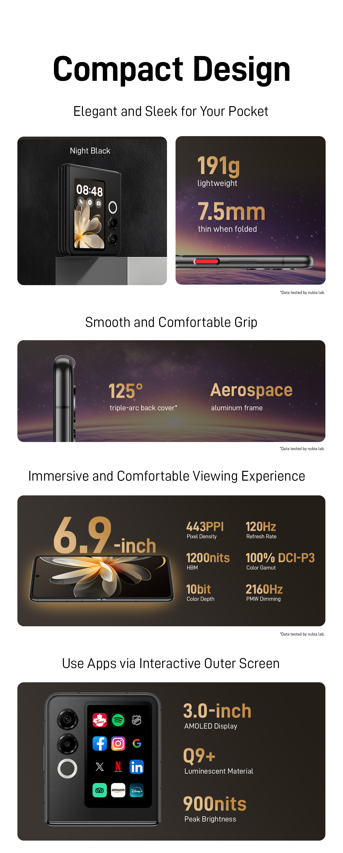 | 191g Open:170 x 76 x 7.5 mm Closed: 87 x 76 x 15.8 mm |