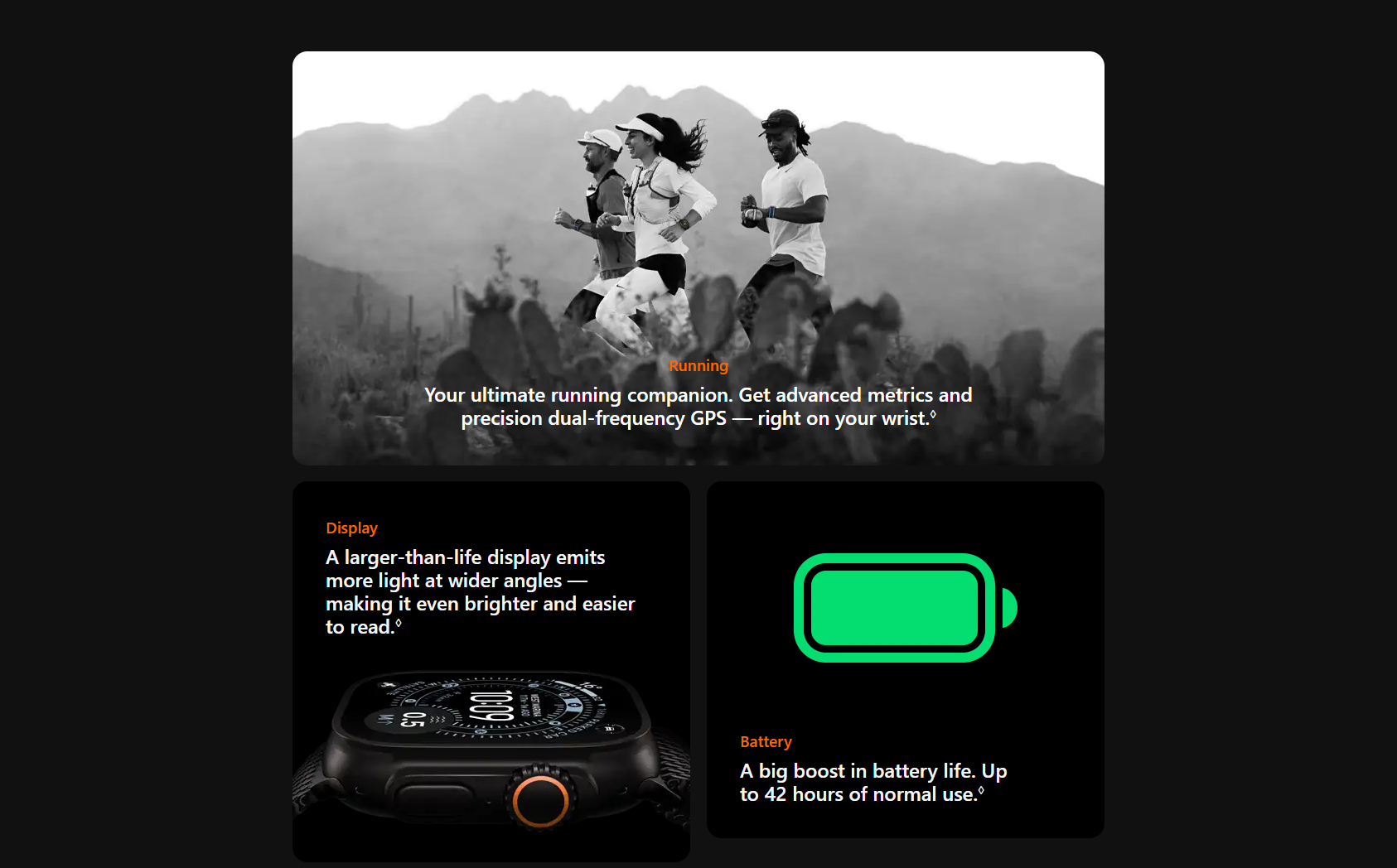 | Multiday battery life, up to 42 hours of normal use Up to 72 hours in Low Power Mode |